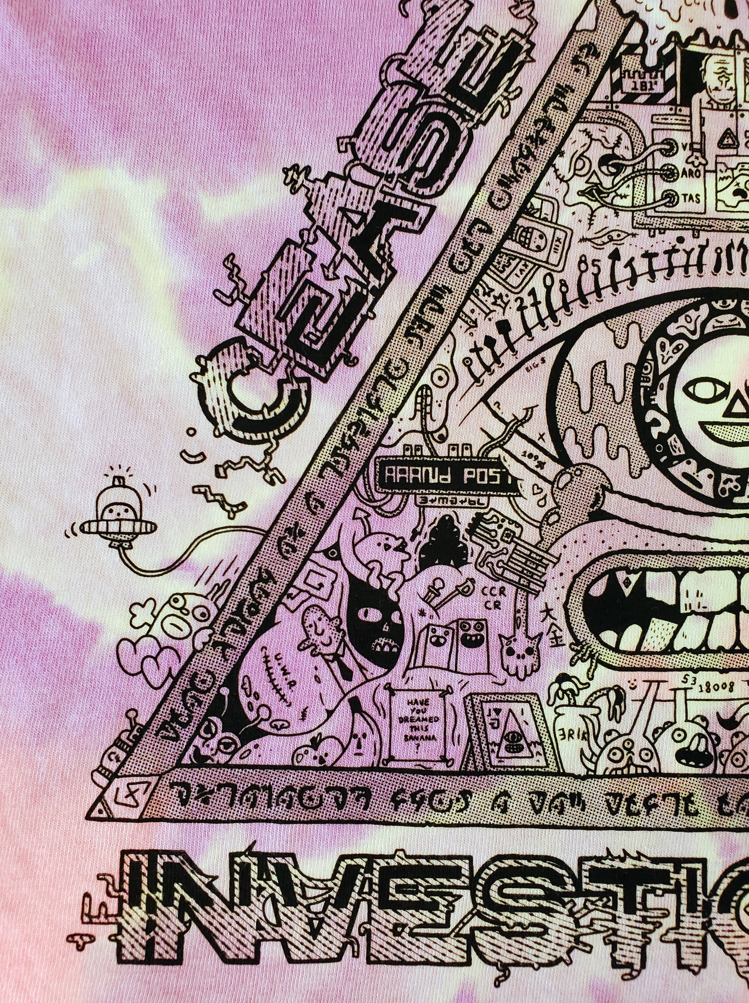 CEASE YOUR INVESTIGATIONS as done by the great and powerful Couk. Do you know the word Wimmelbilder? You do now! This is printed with water-based ink, and sits softly inside the fabric (opposed to on the surface like most screen printing). The level of detail on this design (and print) is just awesome, I've never printed anything like this, and I hope you love it as much as I do! I'll print some hoodie versions of this soon too!